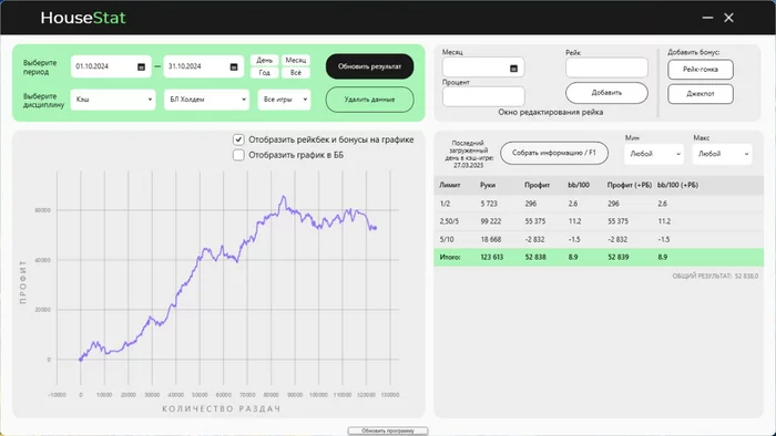 Так уж получилось, что закрыть долги мне вовремя не удалось, поэтому в середине марта мне пришлось отчислиться из вуза по собственному с возможностью восстановиться в следующем году. Принял решение все свободное время, которое у меня будет в ближайшие полгода, потратить на покер. В конце марта понял, что хочу попробовать пожить один и съехал от родителей. Март получился лучшим месяцем в карьере (+100к). Играл зум10 на ПД на РБ, но так же получился и неплохой винрейт.