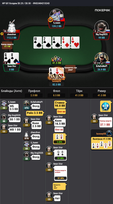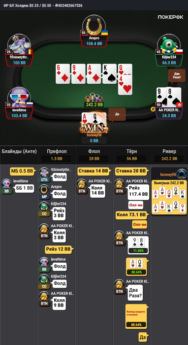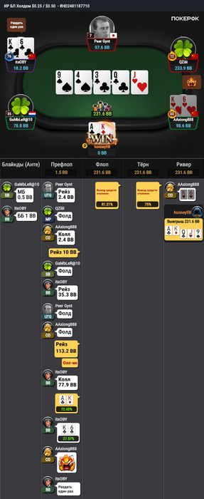 По морали такие сессии бьют очень сильно, но я был намерен играть дальше, пока не дойду до -30би. Потихоньку все стало налаживаться и удалось вернуть все обратно, но каких сил это стоило...... Я испытал весь спектор эмоций, которые только можно испытать, играя такие сессии по 8+ часов в день.После мая я понял, что не смогу терпеть такие стрики, иначе в скором времени кукуха поедет. В середине июня вернулся к родителям, особо не катал. Затеял ремонт в комнате, поэтому первую половину июля был занят им. Во вторую половину июля понял, что соскучился по покеру. Но не по покеру на ПД! Кто играл на ПД, тот знает, что иногда (всегда) там играют очень подозрительные игроки. Случаются такииие раздачи, которые не произойдут нигде, кроме как на ПД. Больше всего это касается НЛ10 и НЛ50 буст. Поэтому принимаю решение снова вернуться на ГГ (раньше МТТ там катал). ГГ встречает меня бодро, сначала дав мне топ2 джек на НЛ25, а потом за участие.