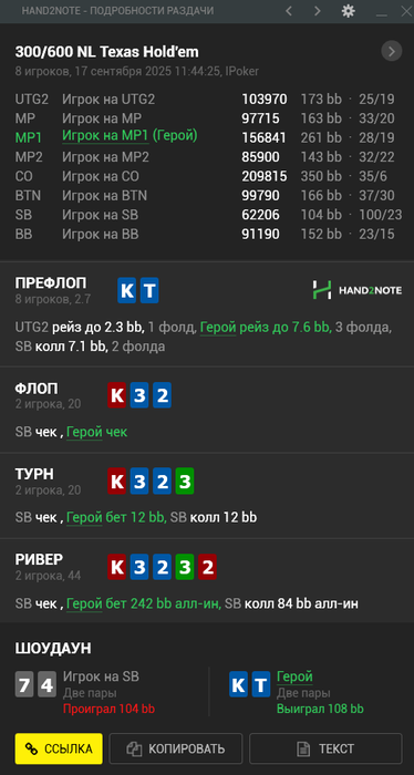 В целом доволен игрой. Я бы оценил на 7-7.5/10, тк было и кучу спорных решений, интересных спотов, которые ниже еще поскидываю на обсуждение отдельными постами)