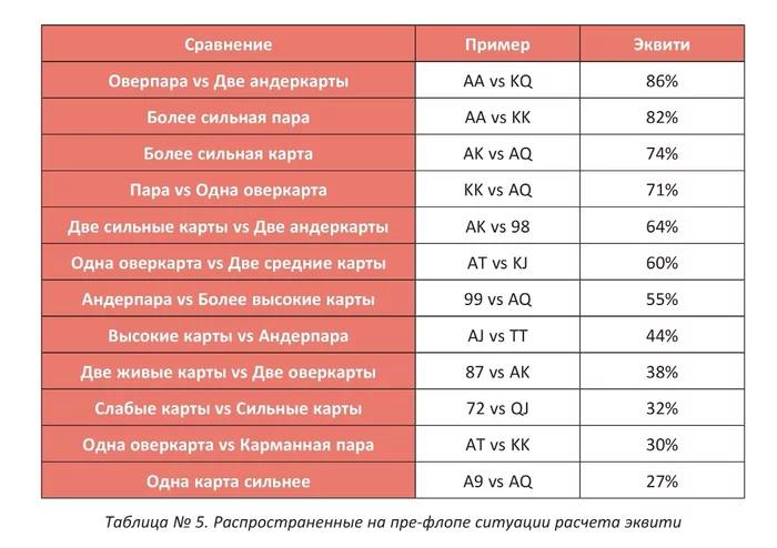А если требуется понять какому диапазону больше подходит текущая доска и её последующие изменения, то это можно прикинуть и без знания eq. Запомнить eq возможно полезно будет на префлопе (для выставления в алынах к примеру) - как карты стоят друг против друга (в книге кстати есть по этому поводу табличка)