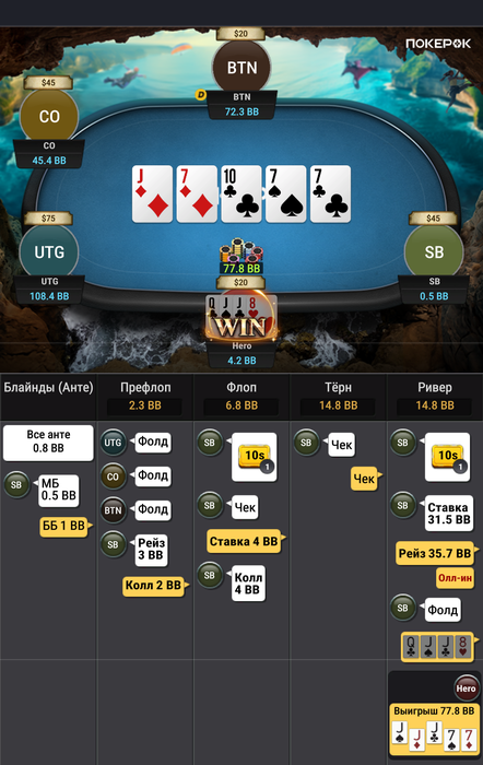 В топ 3 попал с 8бб против двух стеков по 80бб Выставился на более высоких картах и отлетел