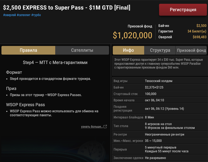 Выиграл в нём билет на сат за $150, сразу же регнулся в следующий холдем турнир: