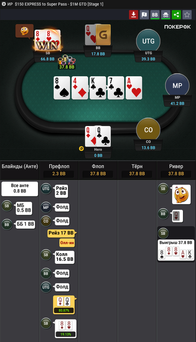 В этой раздаче, учитывая 5бб на флопе, наверное только Нео способен увернуться