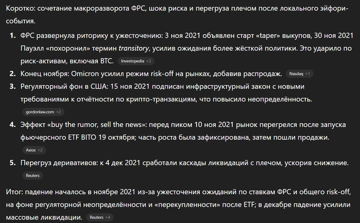 Причиной обвала биткойна в 2021, были новости об ужесточении политики по ставкам ФРС: