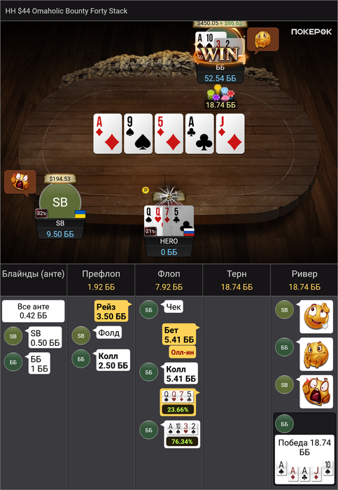 Future_Galaxy, все так. Дисперсия в омахе хай огромная, шаркскоп рекомендует плюсовым регам банкролл на высоких лимитах от 500-600 бай-инов! 🙈🙈🙈