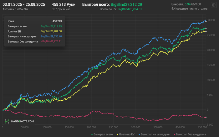 Сейчас играю НЛ 50-200 на Ipoker-е и WPN-е (средняя скорость – 600 рук/час).