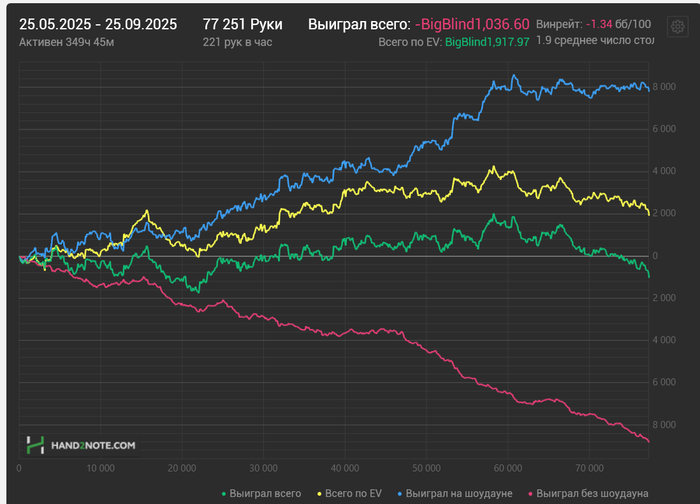 Начал профессионально заниматься покером 1 июня 2024 года,в пике пощупал нл100 с пиковым БРом 4.5к$. Сейчас я откатился до отметки в 2000$,приложу скрины дауна ниже.