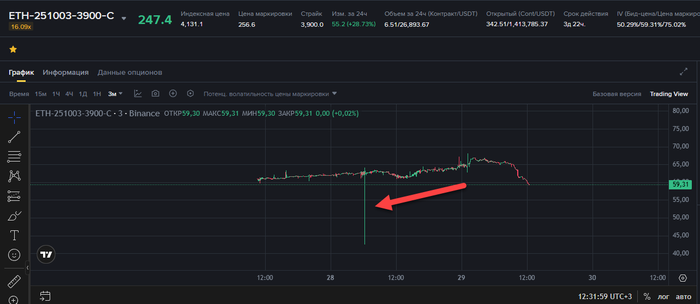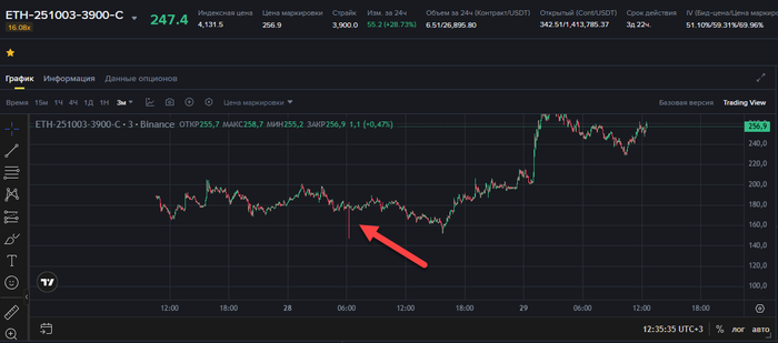 - Текущая цена при входе ETH 3935$, волатильность около 60-62