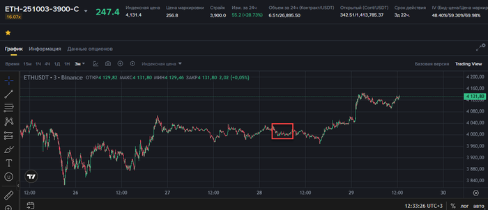 - Вышел заранее 25.09.25 20:22 по цене ETH 3890$, чуть меньше чем за сутки до экспирации, по причинам, которые скажу в выводах