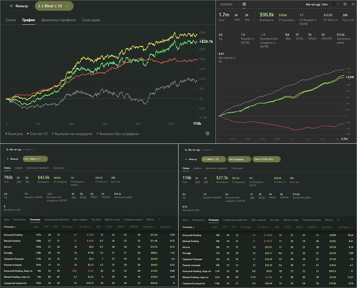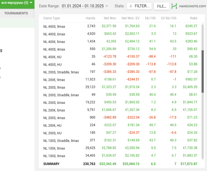 Результаты за последние 230к рук, онли еврорумы нл100-500: