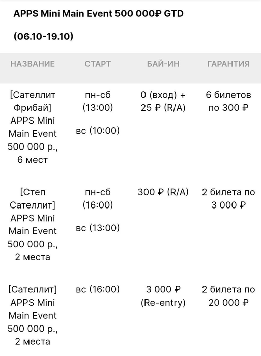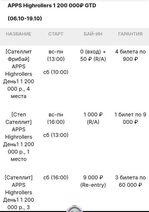 Сателлиты будут проходить ежедневно с 6 по 19 октября с бай-инами от 0р.