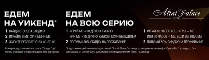 Остальные можно использовать и в Среди Гор и в отеле Алтай Пэлас.