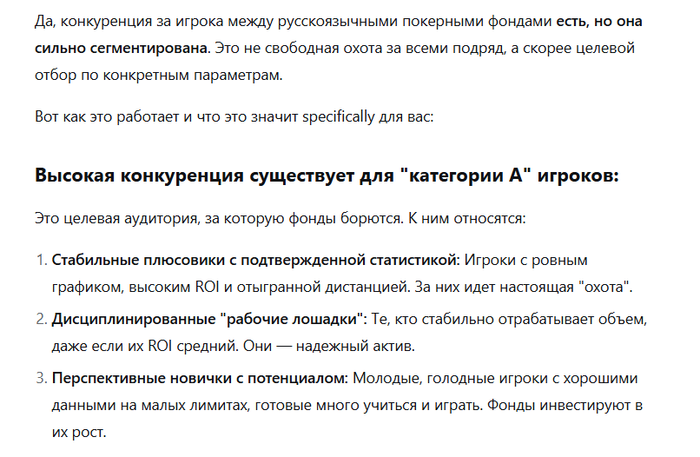 ребят, мне покер нравится. деньги я готов возвращать с профита, частично, не полностью (хотя от суммы зависит). хочу развиваться также в данном направлении. не факт, что 400 турниров каждый месяц стабильно буду играть, потому что 300 еле проходил (играю 6 столов, хз у меня так). но мне не позволяет данная ситуация. и сейчас, получается, внутри фондов я кривой, и никуда залезть не могу, даже на АБИ1, чтобы постепенно раскачиваться. хотя по факту была у меня история с Командой А, когда попал в больницу на месяца два примерно. там тоже сложности были. и чо? как вернулся с больницы, деньги, которые были на счету перевёл обратно. почему? может просто чувствовал человеческое отношение, а не как к инструменту заработка, которым ещё не каждый может стать, видите ли!?