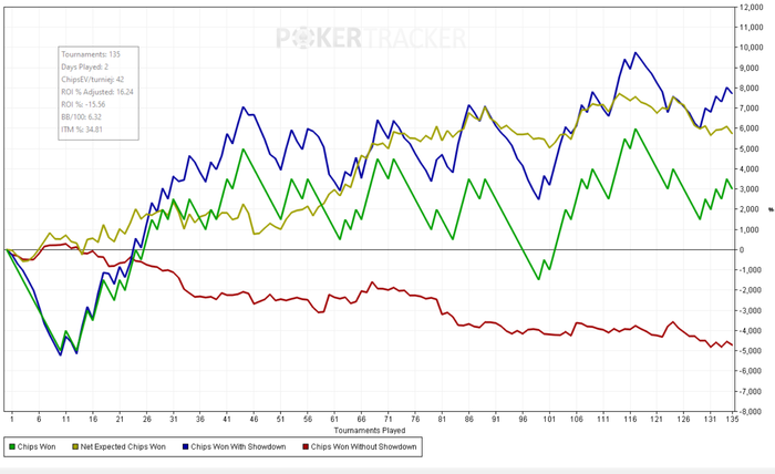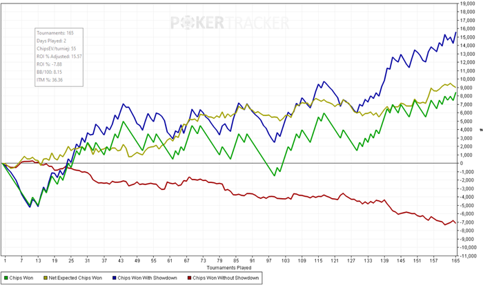 Дополняю первый день, сыграла еще 30 турниров, но понимаю, что уже глаза слипаются, удалось чуть отбить. В итоге -10$ с учетом рейкбэка