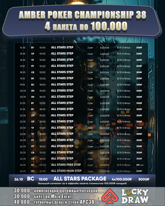 - 16:00 МСК (15:00 по Калининграду) степ к финальному сателлиту Lucky Draw Quattro Bounty.