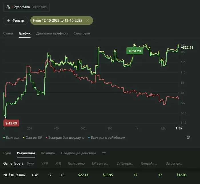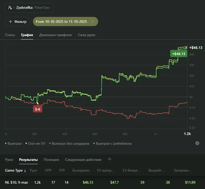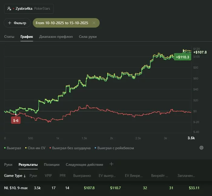 - катка пока что только 9-max на PokerStars не в прайм-тайм с общим количеством рук в месяц около 27–33k