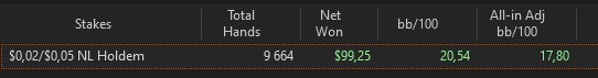 Пишу я всё это не просто так, если честно. Пока план такой: сыграть 100к раздач на nl5 и посмотреть свой реальный винрейт на длительной дистанции. Я играю сейчас на PS, имею скромный банкролл и мне важно понимать какой у меня винрейт без селекта в текущих реалиях. От этого уже можно планировать свою жизнь дальше и понимать с какой вероятностью я смогу побить nl10 настолько, насколько мне это позволит обеспечивать себя пропитанием и оплатой жилья + конечно же, нужно откладывать деньги на чёрный день и для повышения по лимитам. Моя финансовая ситуация стала просто невыносимой и это добавляют в мою жизнь огромное количество стресса: я не просто нахожусь в нищенском положении, я буквально на грани смерти, потому что если мне придётся выходить на улицу, это гарантированно будет означать оказаться где-то в подвалах украинской армии, а потом на полигоне, и со временем на фронте. Я в шоке, если честно: никогда не думал, что окажусь в такой ситуации. Пока план А: Побить nl5 с винрейтом не меньше 10bb/100 и отыгрывать в месяц примерно 40к рук. Сумма выигранных денег позволит банально не умереть с голоду. Плюс поборюсь здесь в битве блогеров. Если удастся выиграть, это будет как бальзам на душу: во-первых, это будет огромной прибавкой к банкроллу, во-вторых, я обожаю писать и мне всю жизнь хотелось профессионально заниматься блоггингом. Если стабильно буду залетать в топ, это сильно мне поможет. Та и давно уже хотелось найти место куда можно будет писать свои рассуждения: почему бы не выбрать для этого этот форум?