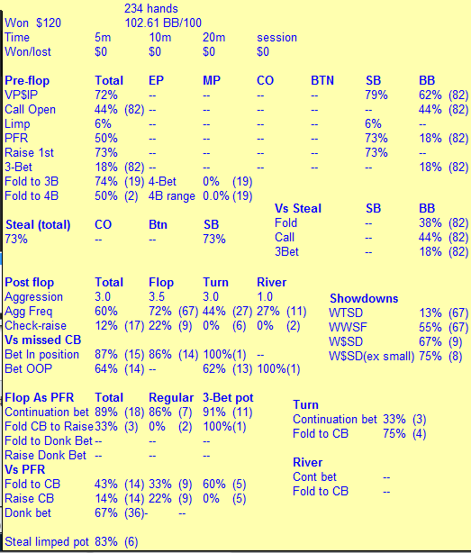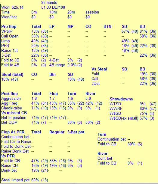 2) Проблема в терне, ты поставил слишком мало, поэтому внес в анализ - этот момент: "раз я на терне поставил так мало, он мог подумать, что у меня слабая рука, поэтому на ривере может быть и блеф..." и т.п. В общем, избегай такого сайзинга, который может помешать чистоте решений в случае, если оппонент решит проявить агрессию.