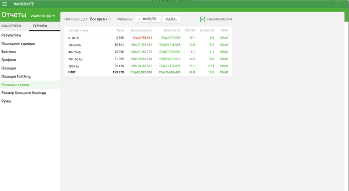 Результаты за последнее время . В данный момент нахожусь в FF . https://ru.sharkscope.com/poker-statistics/networks/Player%20Group/players/VSMPZDEC?filter=Class:SCHEDULED