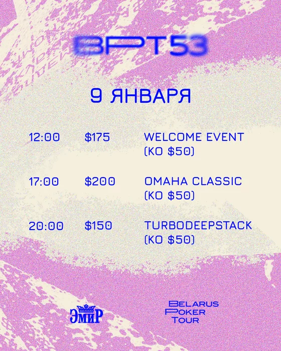 Опубликовано расписание BPT53 (9-19 января) https://pokertour.by/calendar-bpt53/