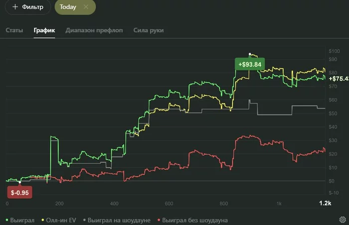 Немного покатал с утра - график радовал глаз. Ничего сверхъестественного не делал: просто шла хорошая карта, а ребята на лимите любят платить за нее по полной. Классический случай, когда тебе просто везет оказаться в нужной стороне дисперсии.