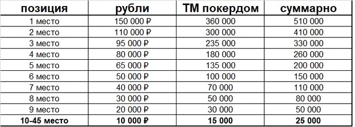 3) Турнир начнётся в 9:30 на 45 человек, которые будут бороться за гарантированный призовой фонд. Из которых победитель получит суммарно 510.000.