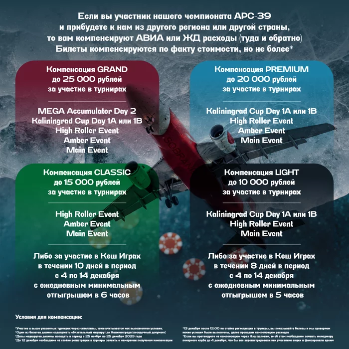- компенсация выплачивается 13 декабря на стойке регистрации ПК после проверки выполнения условий и ваших билетов;