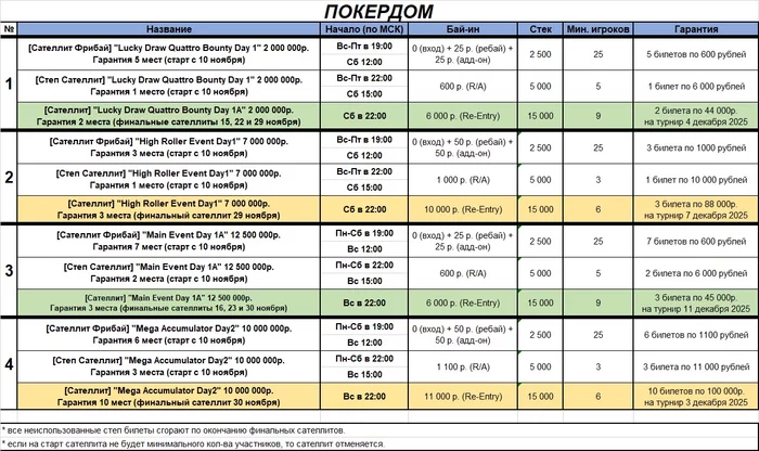 3) Main Event - финальные сателлиты пройдут по воскресеньям 16, 23 и 30 ноября.