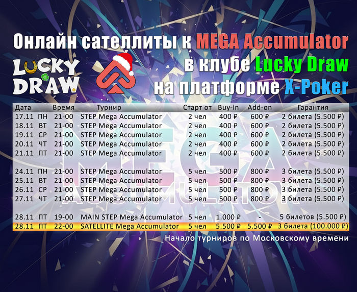 4) MEGA Accumulator Day 2 - финальный сателлит пройдёт в воскресенье 30 ноября.