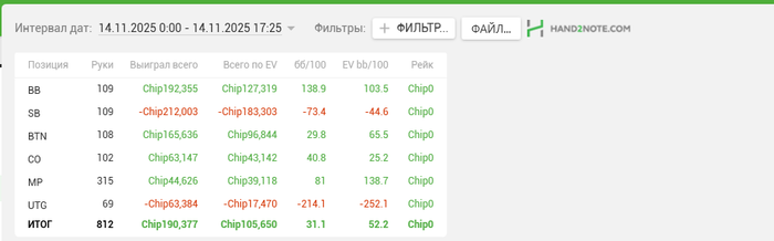 В целом, день получился насыщенным: победа, три ITM, рабочий плюс по результатам и хорошая тренировка психологической устойчивости. Движемся дальше — шаг за шагом, турнир за турниром, набирая форму и уверенность.