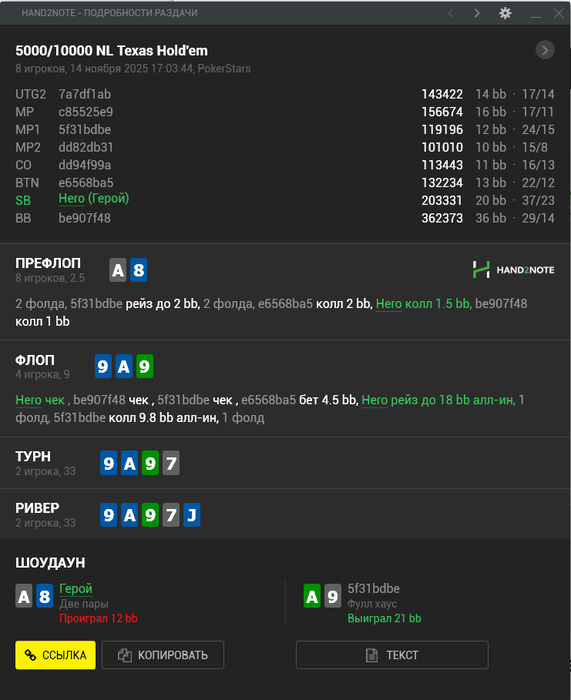 Анализ раздач и ICM-ситуаций;