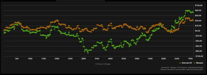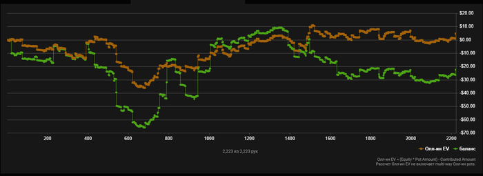 Сейчас я играю по 8-10 часов каждый день, чтобы хоть как-то сгладить чудовищную диспу) Вот мой вчерашний ран, я играю по 10-14 столов вне стрима и удалось набить 7000 рук в PLO - это мой рекорд.
