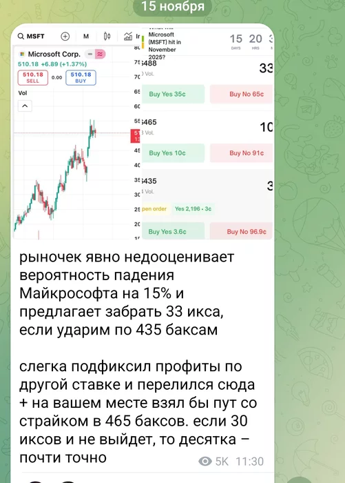 Crock @ 15.11.25Может кто то тоже ставит на Polymarket? рассказывайте про свой опыт и мысли о том, какие рынки по вашему мнению выгодные:)
