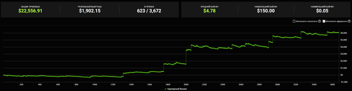 плюс нокауты не учтены, в мистери что-то типа 3000 вытащил в баунти 7 по 300. ну и курс у.е. в казино 1у.е. = 100руб.