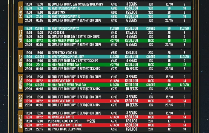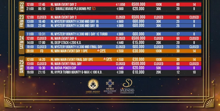 ▪️ €880 Merit Poker Cup, €250.000 гарантия, 14–18 January.