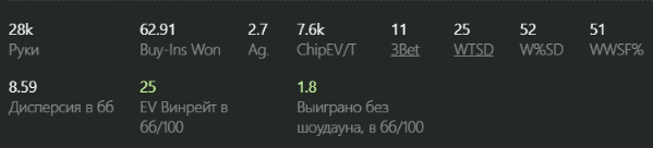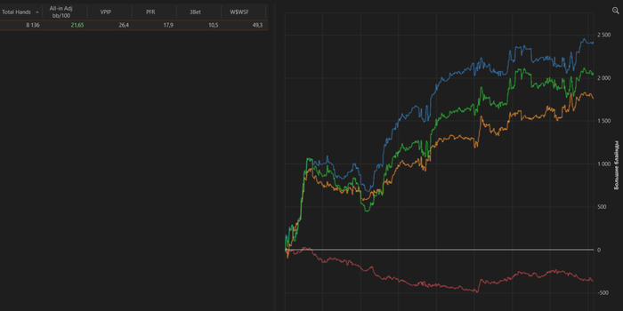 Играл где то на 6/10, в чип ев слегка перебрал по количеству столов. Когда я в форме то могу комфортно играть 12, но сегодня, поверив в себя, споймал расфокус и уверен, что упустил немало ев. Но зато в дипах отыграл ахуенно (насколько умею), ни разу не отъехал, завтра перед сессией пару часов посижу разберу помарканые раздачи, около 50ти штук насобиралось за сегодня.