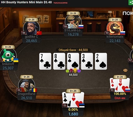 Но вся моя игра закончилась после утроения с QQ против JJ и АК. Я стал чипаком при 25 игроках. Прикинув стеки я понял, что могу просто досидеть до финалки, у меня останется средний стек, если его не растерять, я получу сразу 400 долларов за 9-ое место, + у меня уже было 200+ долларов баунти. И следующий час я нон стопом жал кнопку FOLD почти не атакуя и не защищая блайнды, предпочитая разыгрывать лишь очень сильные руки. И то с КК против А3 на ББ проиграл 6 бб.