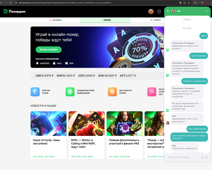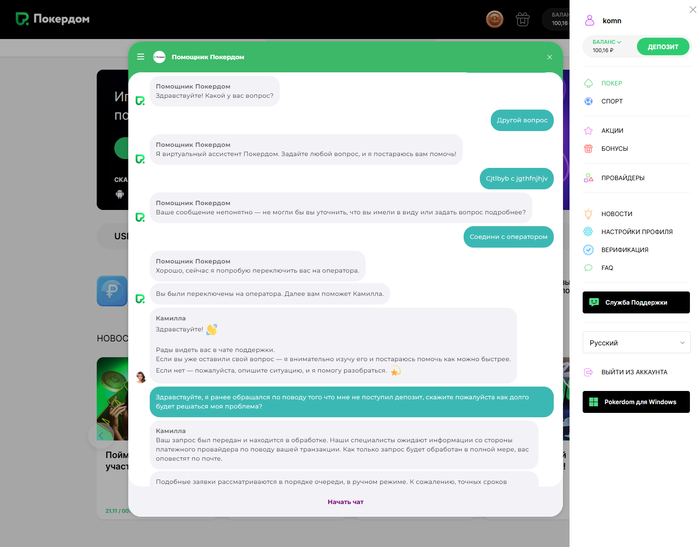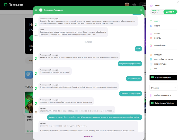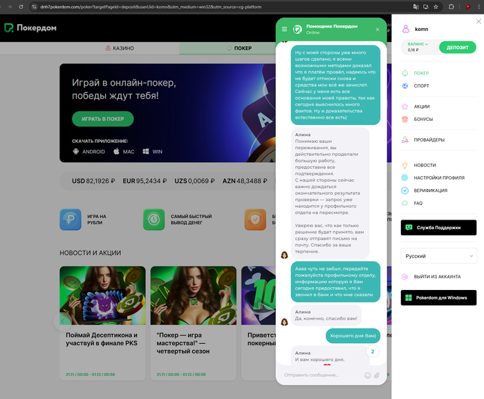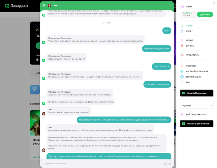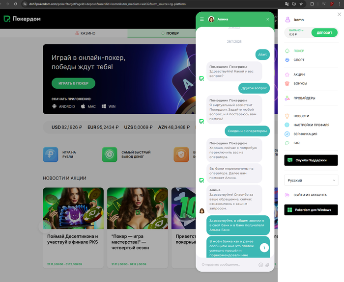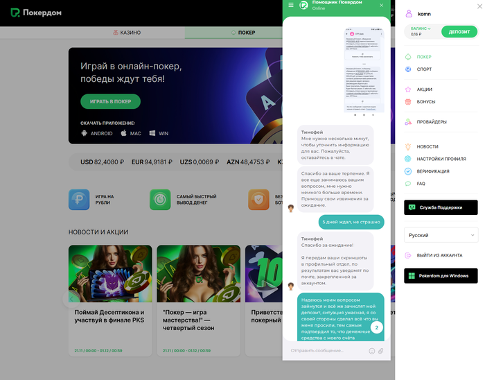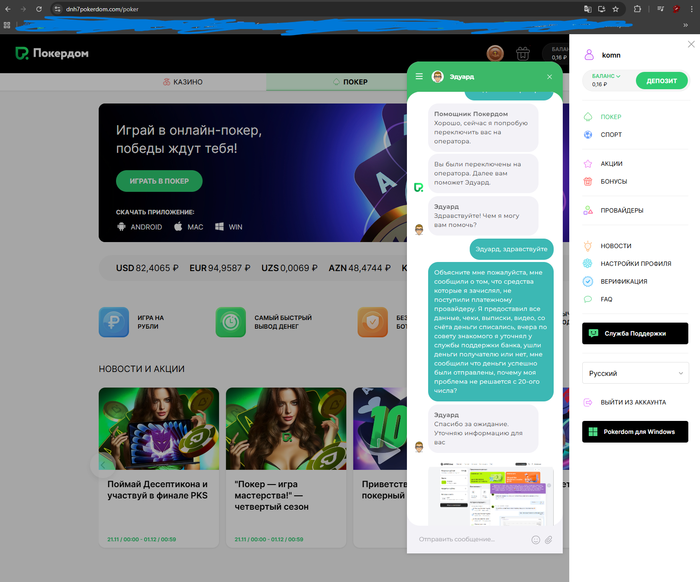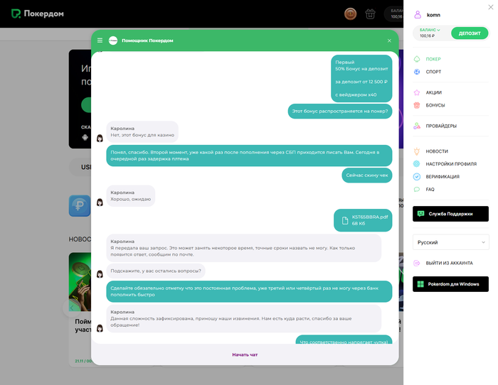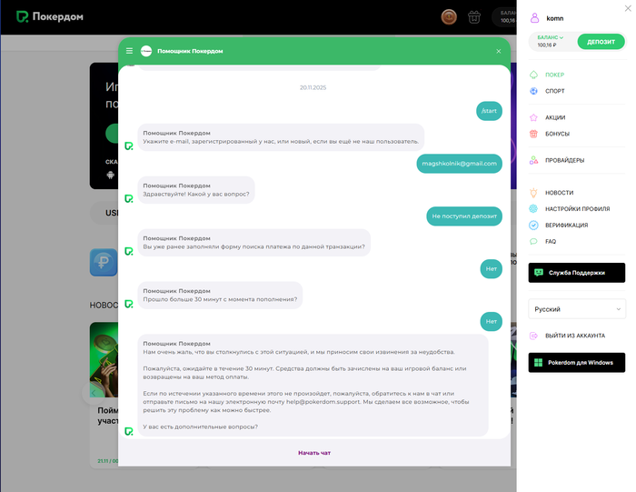 Уже почти две недели, как я сделал депозит на «Покердом», 20.11.2025 я совершил депозит с помощью СБП