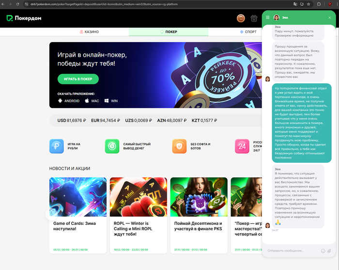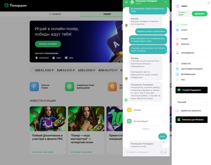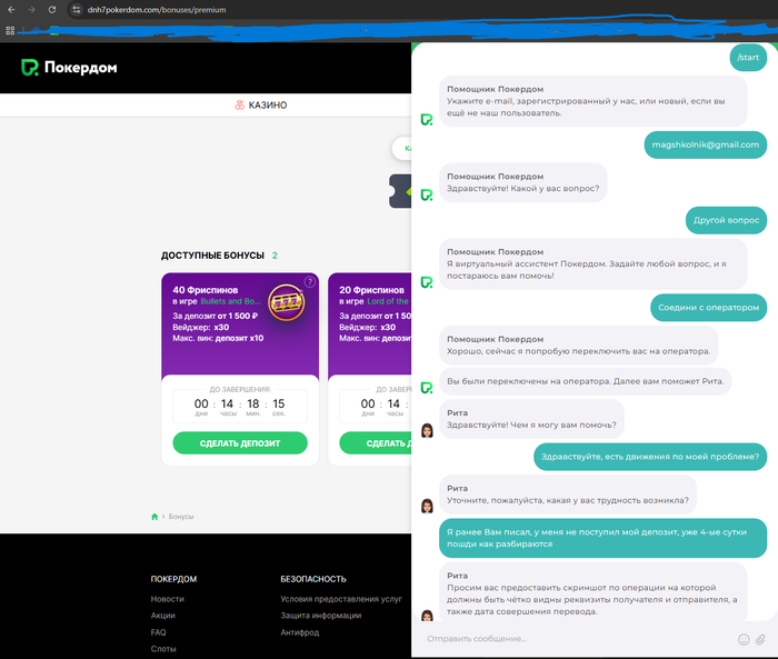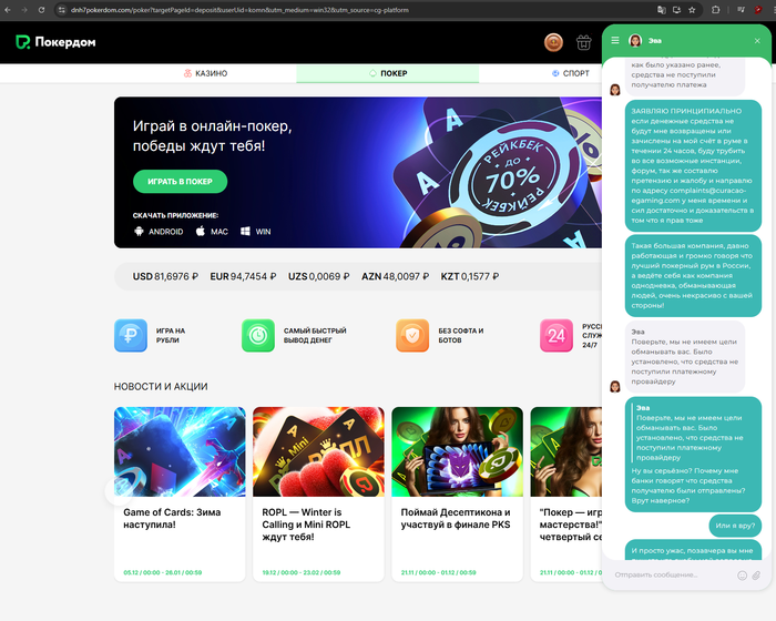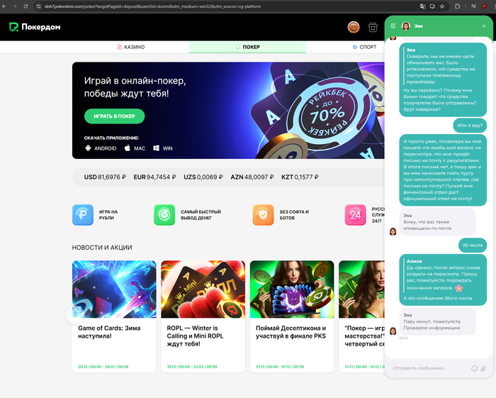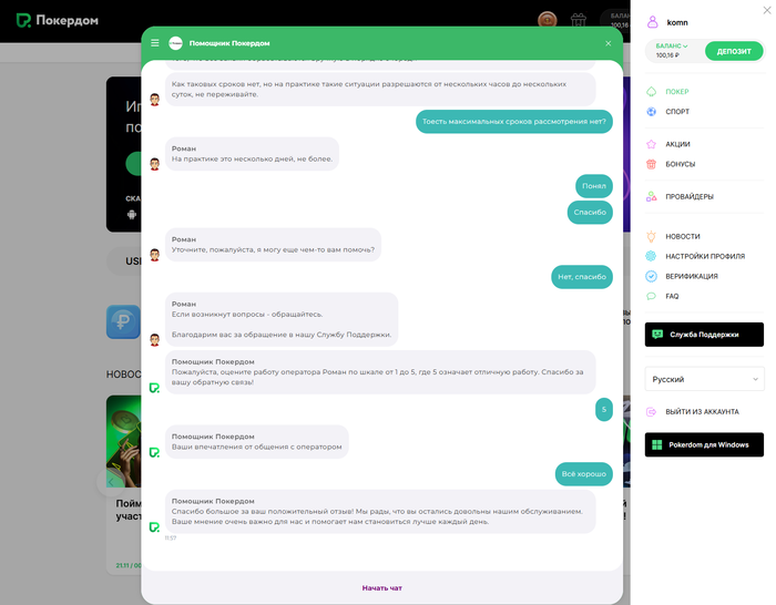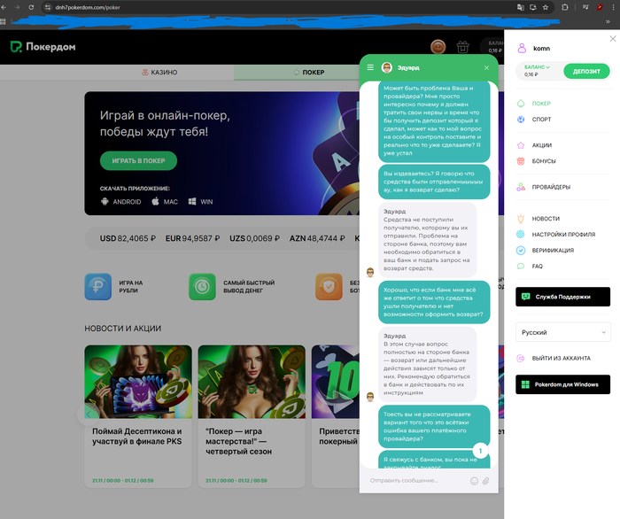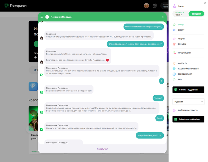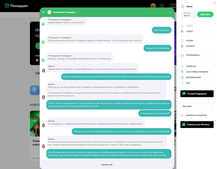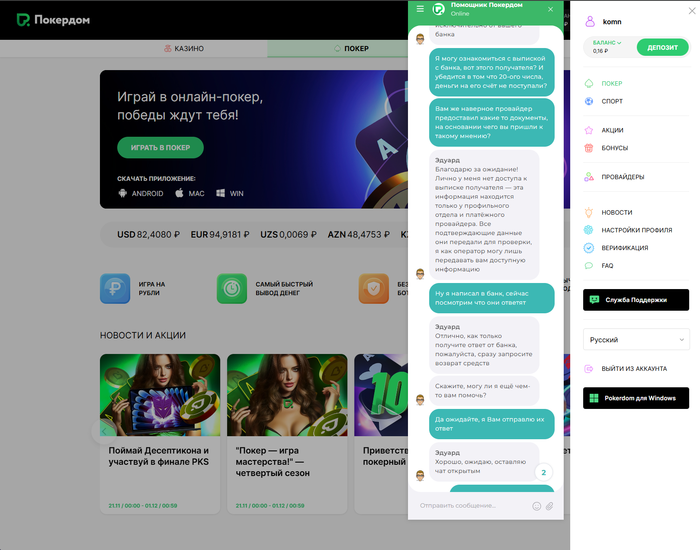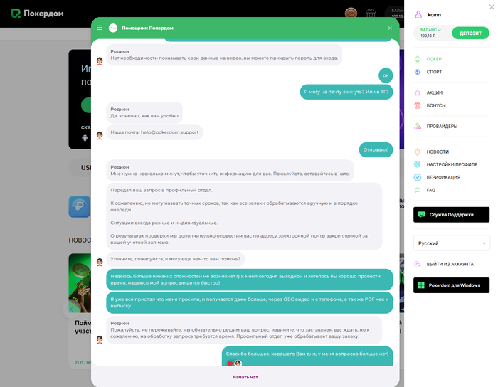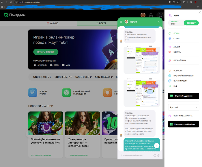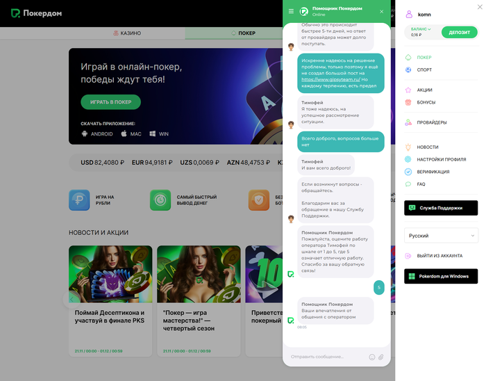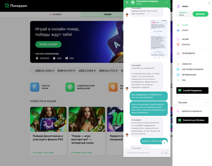 Почему меня динамит «Покердом» — загадка, думаю, после того как вы прочтёте переписку с поддержкой, а она очень длинная, сделаете свои выводы, не попадайте в такую же ситуацию, как я. Всем добра)
