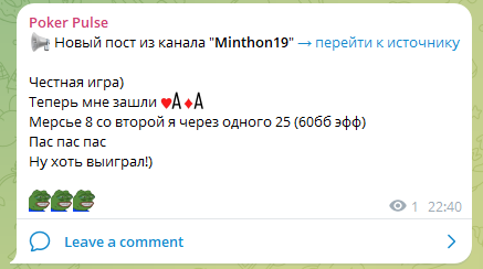 Итог: В канал попадает только "золотой" контент. Никакого скама, только покер, новости и интересные раздачи.