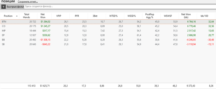 2. Покер можно сравнить с иностранным языком и подход к обучению должен быть схожий. Мы должны разбить игру на части и постепенно изучать от самых основных Алфавит-Префлоп к более сложным. Рекомендую разобраться в первую очередь как играть в позиции на UTG - MP - CO - BTN vs BB. Это млекие банки, но самые прибыльные.