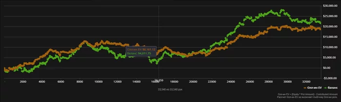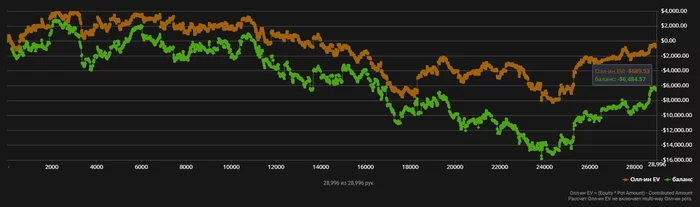 Бывали разные периоды в игре. Помню, когда началась СВО, решил вывести все бабки с рума из-за неопределенности. Когда понял, что игра продолжается, опять сделал деп на 16K и решил гриндить ПЛО 200. И вот тут началось... Бед биты, кулера, ничего не могу выиграть. Делал перерыв на месяц- не помогло( Начал спускаться по лимитам- Пло 100, 50. По итогу недобор за 22 год был более 20К.