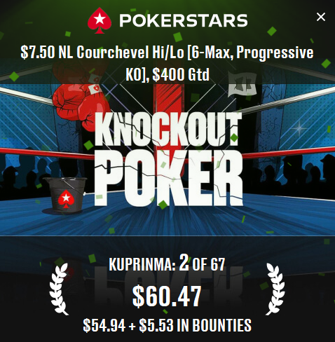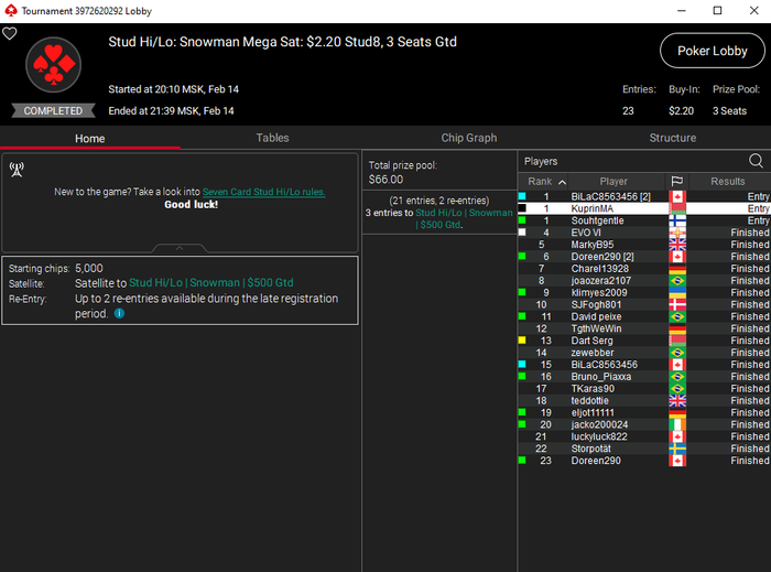 Сегодня днём сыграл два турнира: бадуги и куршевель хай-лоу. И снова оба удалось выиграть.