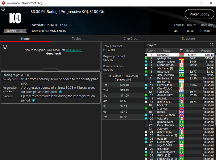 Мои результаты в PL Badugi: