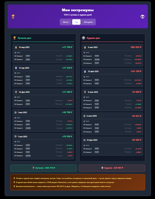 3. Блок "Мои экстремумы" покажет много интересного и даст пару советов.