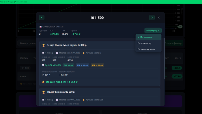 - Добавлена возможность вручную заносить свои результаты из других румов, как кэш, так и турниров.