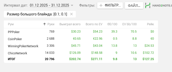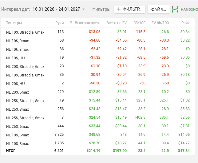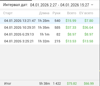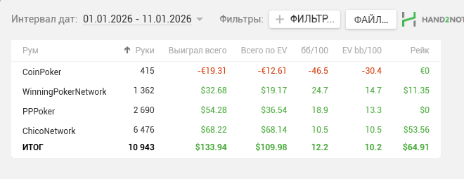 18к рук от 16 числа сыграл. Снова начинаю вкатываться. Думаю с НГ получится и 40к рук в месяц делать.