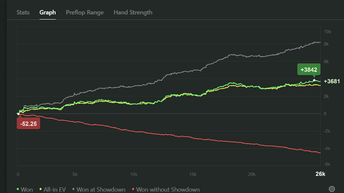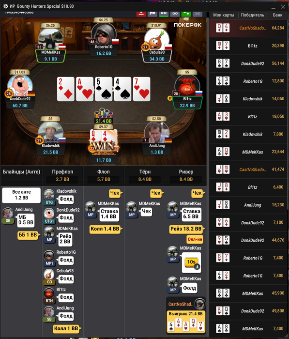 kahtuk, Привет, до аби 100 и я бы не отказался дойти, но буду более чем доволен играть аби 15 с рои 40-50. В покере с 18 лет, сейчас мне 35, пол жизни в любимом болоте.)) Были разные дисциплины: доны, кеш, снг 9макс, но дольше всего ХА гиперы, где на пике карьеры катал 30 лимит с запрыгиванием под любителей на 60. Эталонный неталантливый регуляр.