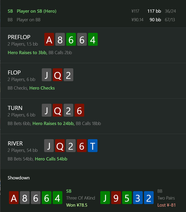 Чуть ли не первый раз в жизни увидел фолд в подобном споте. 44 выкинул что ли?