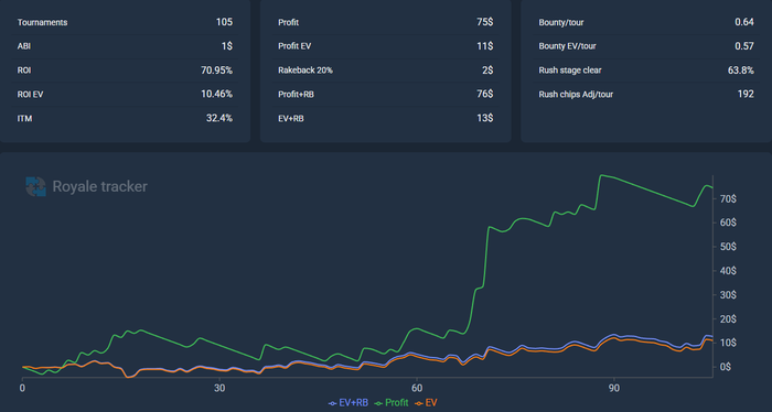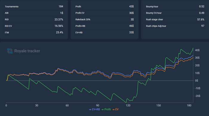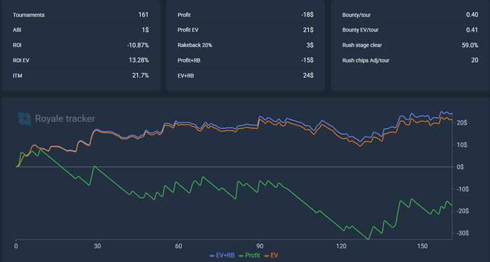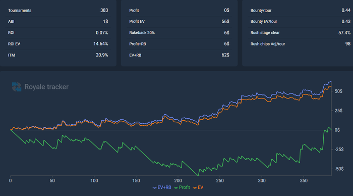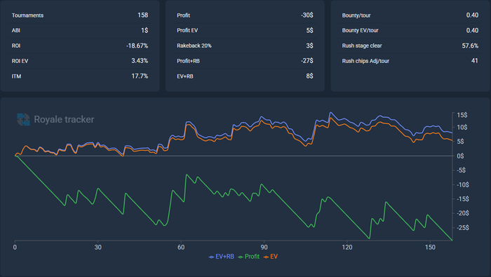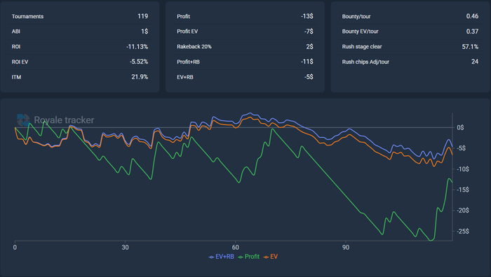 По скрину видно, что даже с учетом +-200 турниров по 0,25 я играю 1$ в минус пре рб. Что очень мало ноков.